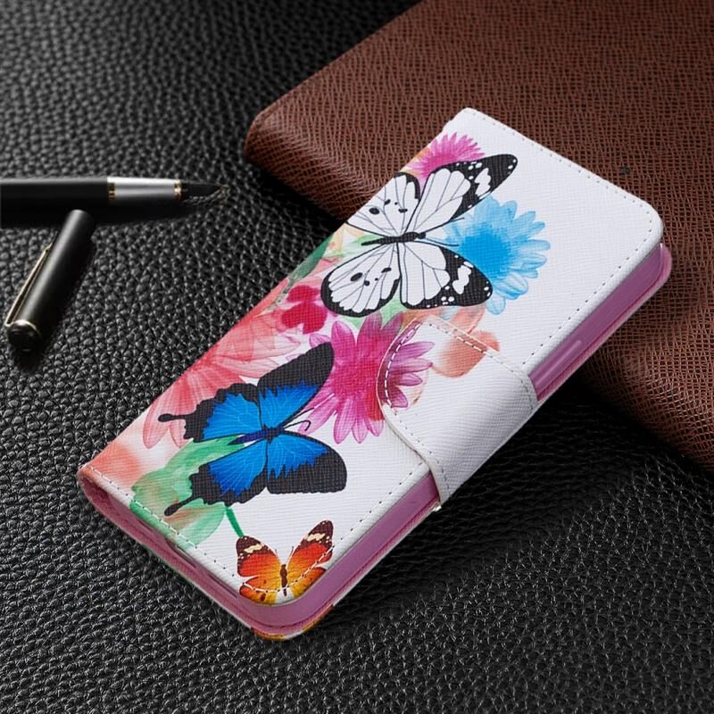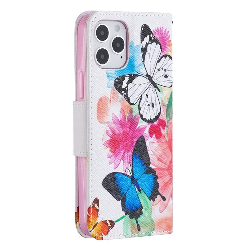 Θήκη δέρματος οριζόντιας αναδίπλωσης με σχέδιο ζωγραφικής σε χρώμα για iPhone 12 / 12 Pro με βάση & υποδοχές καρτών & πορτοφόλι (Δύο Πεταλούδες)