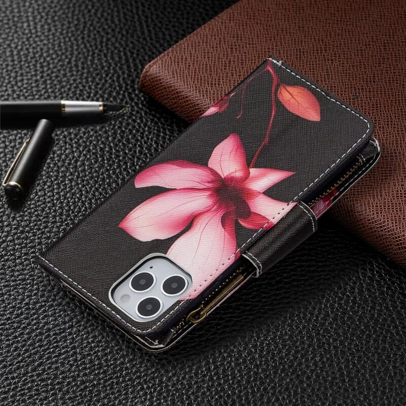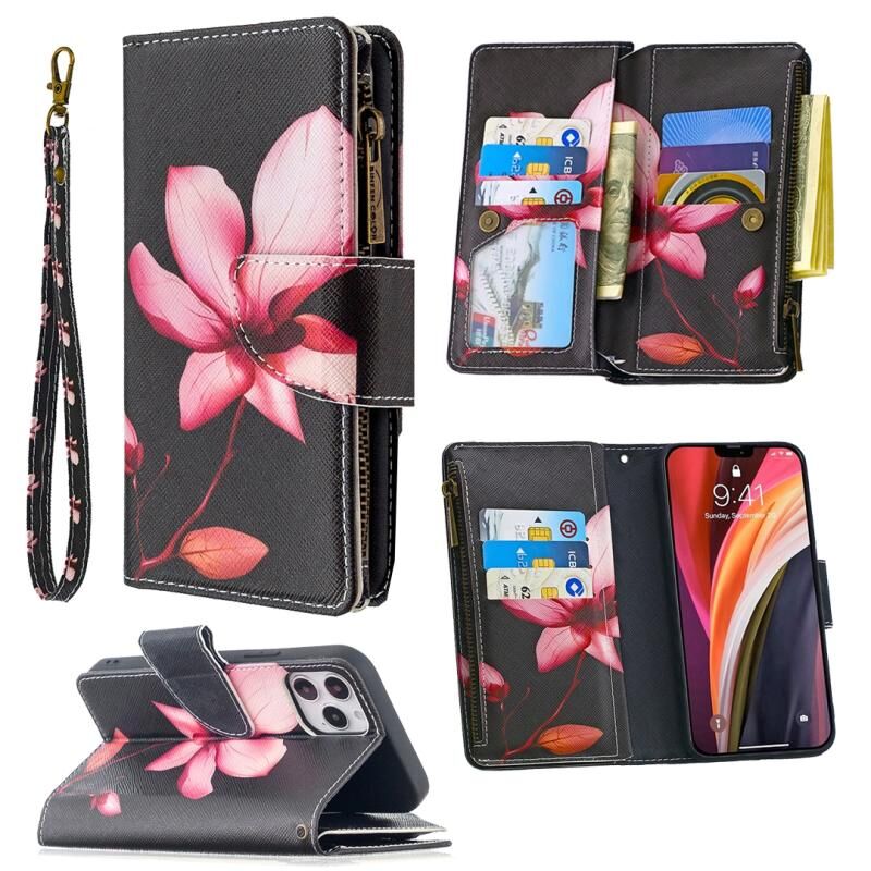 For iPhone 12 / 12 Pro Colored Drawing Pattern Zipper Horizontal Flip Leather Case with Holder & Card Slots & Wallet(Lotus)