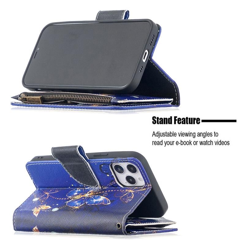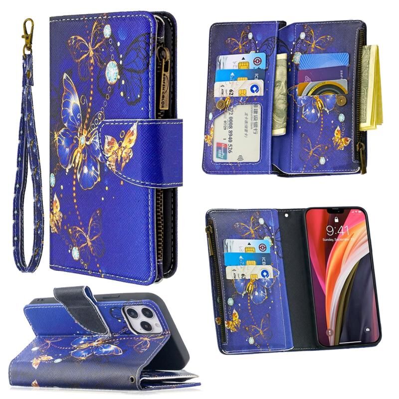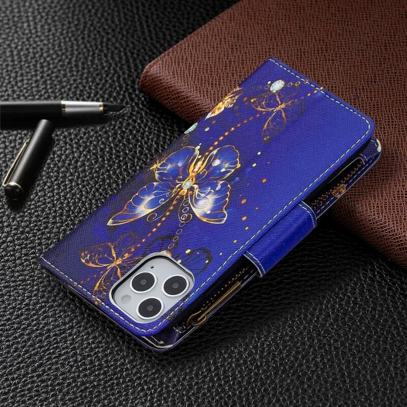 For iPhone 12 / 12 Pro Colored Drawing Pattern Zipper Horizontal Flip Leather Case with Holder & Card Slots & Wallet(Purple Butterfly)