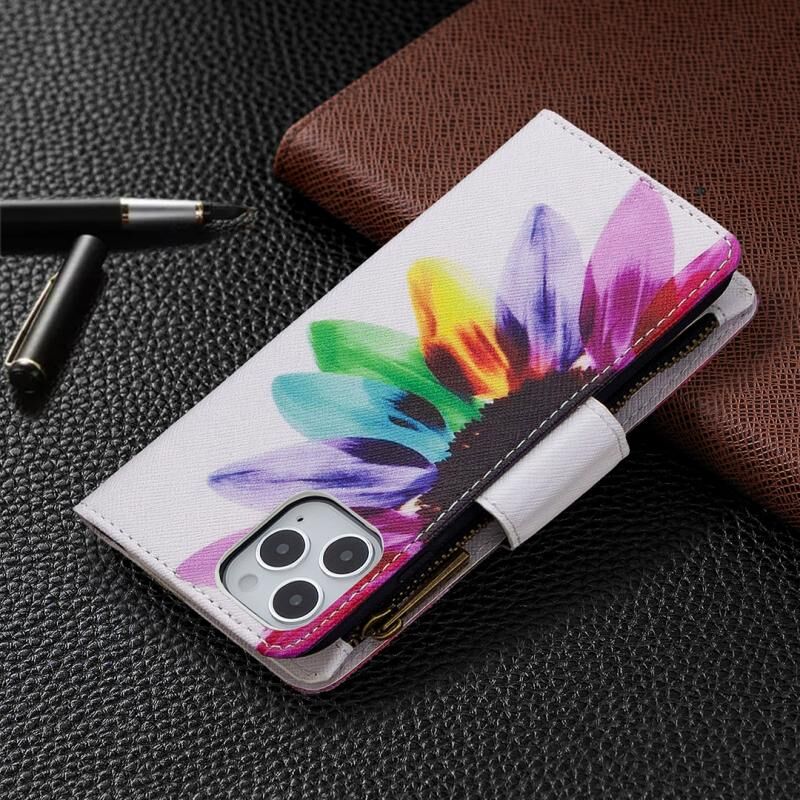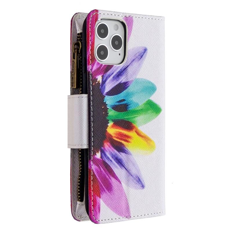 For iPhone 12 / 12 Pro Colored Drawing Pattern Zipper Horizontal Flip Leather Case with Holder & Card Slots & Wallet(Sun Flower)
