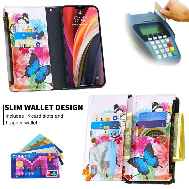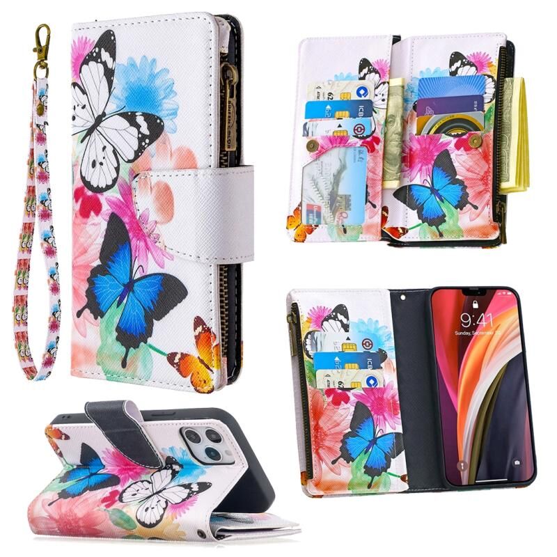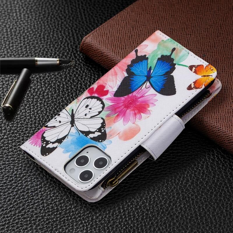 For iPhone 12 / 12 Pro Colored Drawing Pattern Zipper Horizontal Flip Leather Case with Holder & Card Slots & Wallet(Two Butterflies)