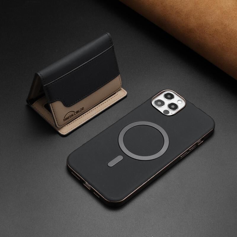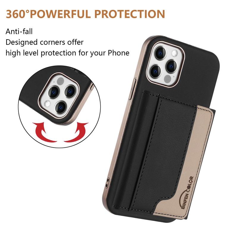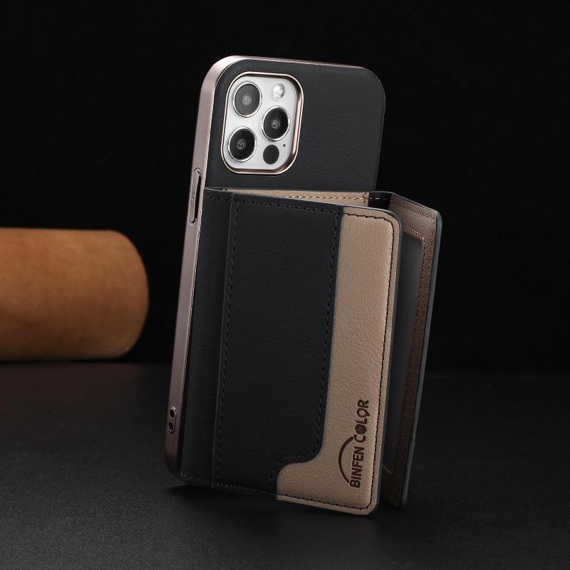 For iPhone 12 / 12 Pro Colour Matching Horizontal Magnetic Card Bag RFID MagSafe Phone Case(Black)