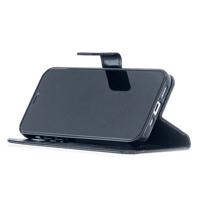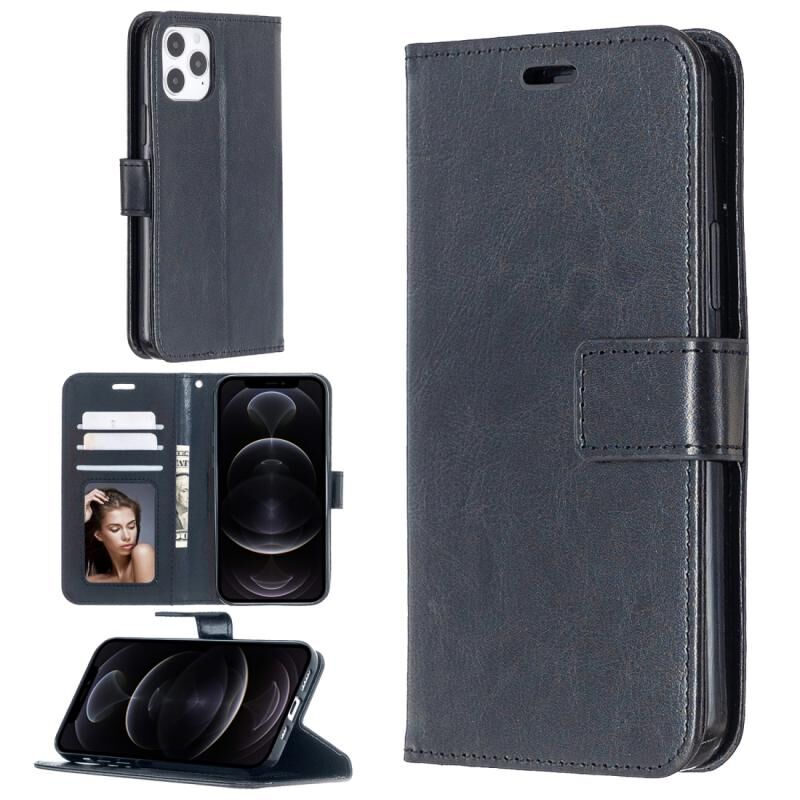 Θήκη δέρματος οριζόντιας αναδίπλωσης με υφή Crazy Horse για iPhone 12 / 12 Pro με βάση & υποδοχές καρτών & πορτοφόλι & κορνίζα φωτογραφιών (Μαύρο)