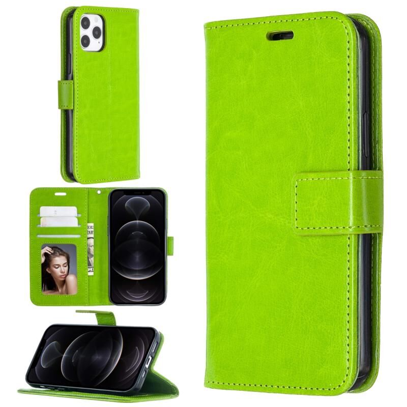 Θήκη δέρματος οριζόντιας αναδίπλωσης με υφή Crazy Horse για iPhone 12 / 12 Pro με βάση & υποδοχές καρτών & πορτοφόλι & κορνίζα φωτογραφιών (Μαύρο)