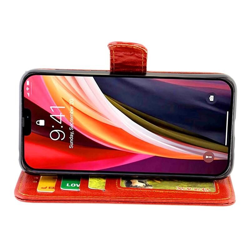 Θήκη προστασίας οριζόντιας αναδίπλωσης από δέρμα Crazy Horse για iPhone 12 / 12 Pro με βάση στήριξης & θήκες καρτών & πορτοφόλι & κορνίζα φωτογραφιών (Καφέ)