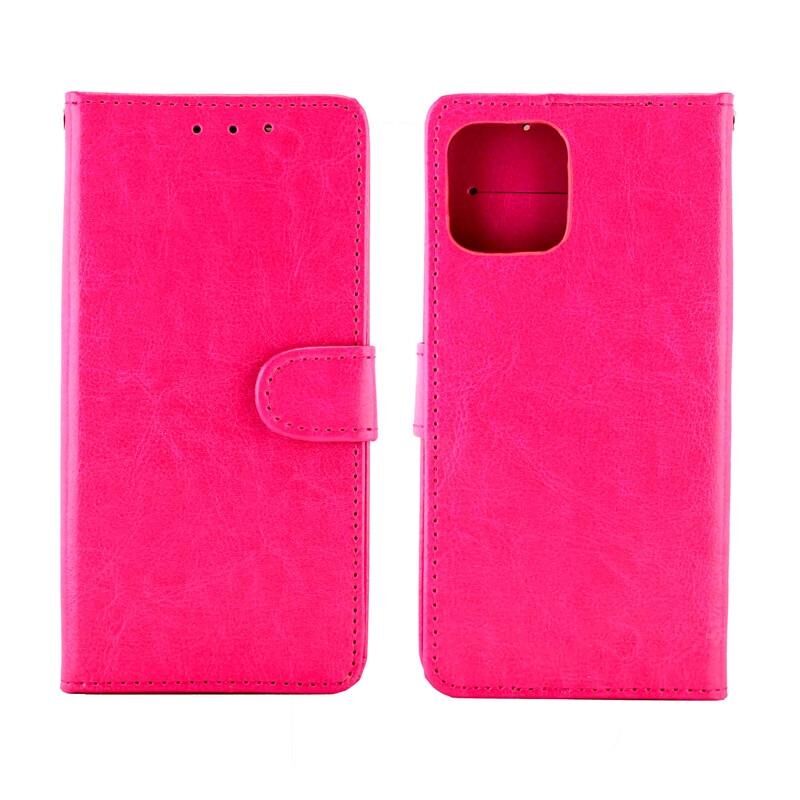 Θήκη προστασίας οριζόντιας αναδίπλωσης από δέρμα Crazy Horse για iPhone 12 / 12 Pro με βάση στήριξης & θήκες καρτών & πορτοφόλι & κορνίζα φωτογραφιών (Ματζέντα)
