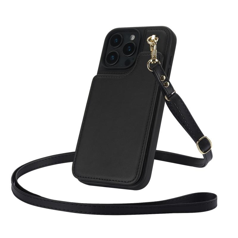 For iPhone 12 / 12 Pro Crossbody Dual-Buckle Wallet Back Leather Phone Case(Black)
