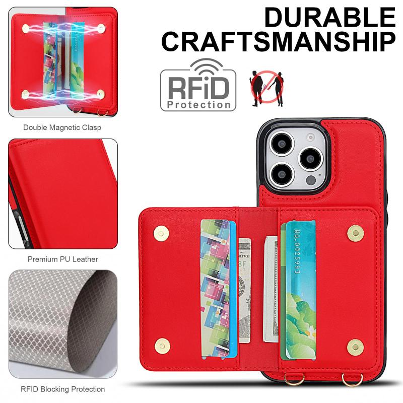 Θήκη iPhone 12 / 12 Pro Δερμάτινη με Λουρί & RFID (Κόκκινο)