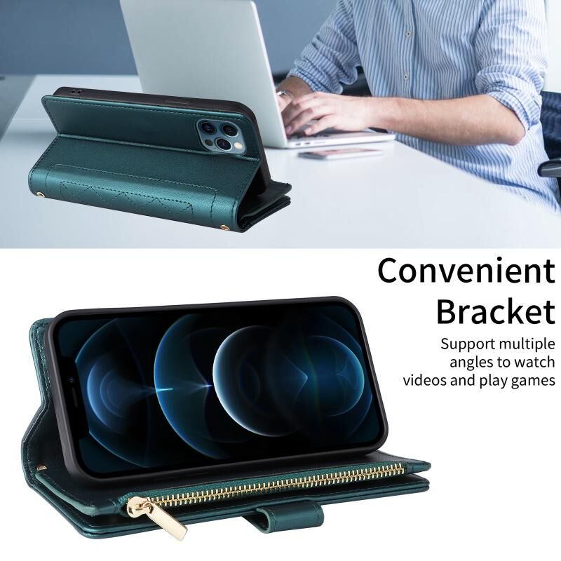 Θήκη τηλεφώνου από δέρμα με σχέδιο ρόμβου, με φερμουάρ και θήκη crossbody για iPhone 12 / 12 Pro (Πράσινο)
