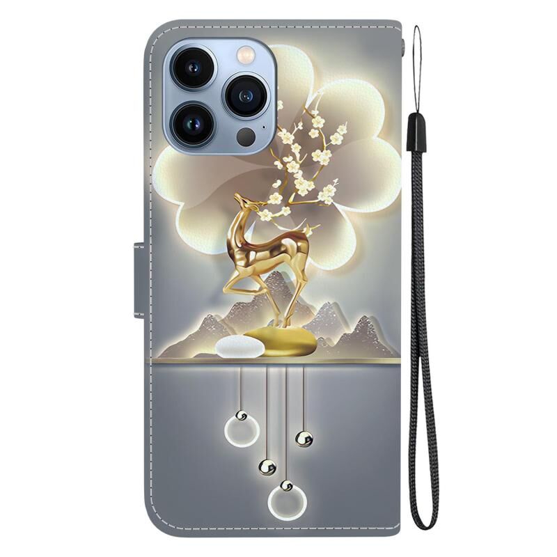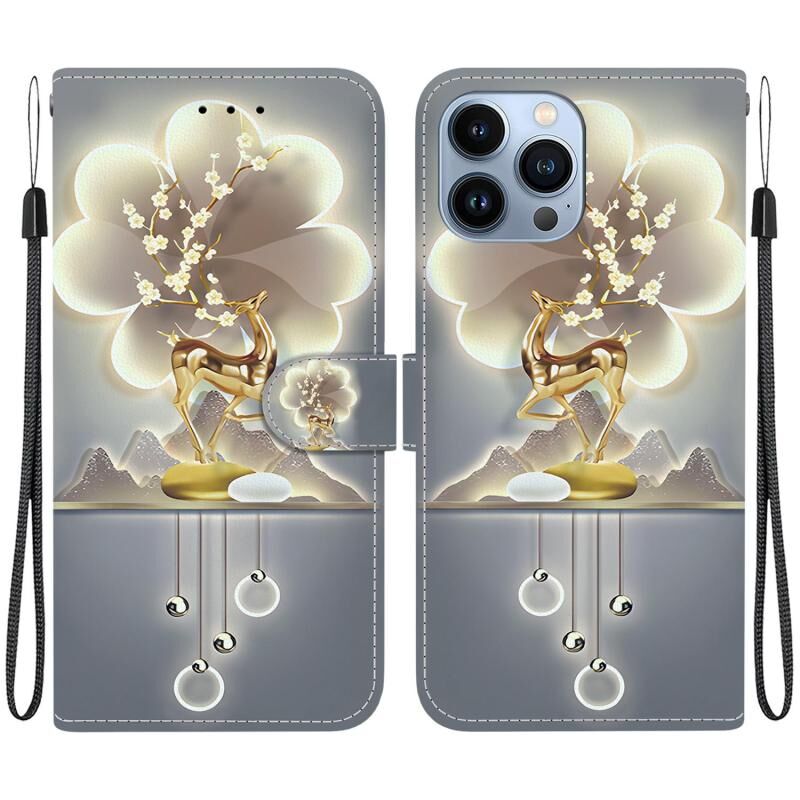 For iPhone 12 / 12 Pro Crystal Texture Colored Drawing Leather Phone Case(Sika Deer)