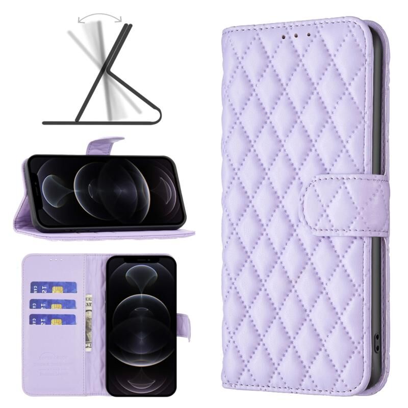Θήκη τηλεφώνου τύπου flip από δέρμα με πορτοφόλι και διαμαντένιο πλέγμα για iPhone 12 / 12 Pro (Μπλε)