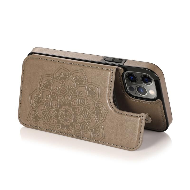 Θήκη προστασίας για iPhone 12 / 12 Pro με διπλή αγκράφα, σχέδιο Mandala, PU+TPU με θήκες για κάρτες & στήριξη & κορνίζα φωτογραφιών (Χρυσό ροζ)