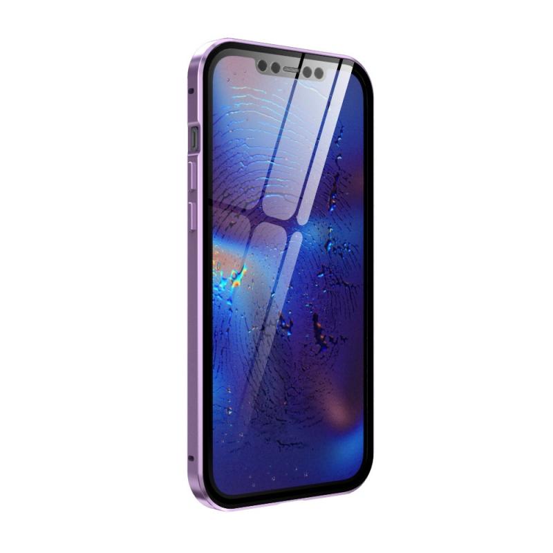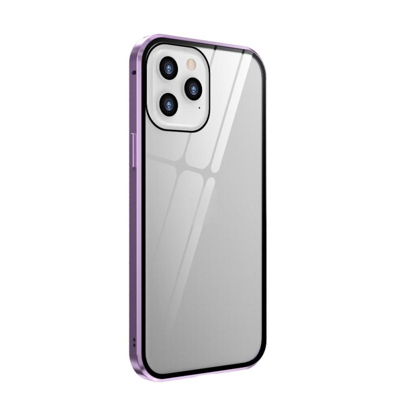 For iPhone 12 / 12 Pro Double Sides Tempered Glass Magnetic Adsorption Metal Frame HD Screen Case(Light Purple)