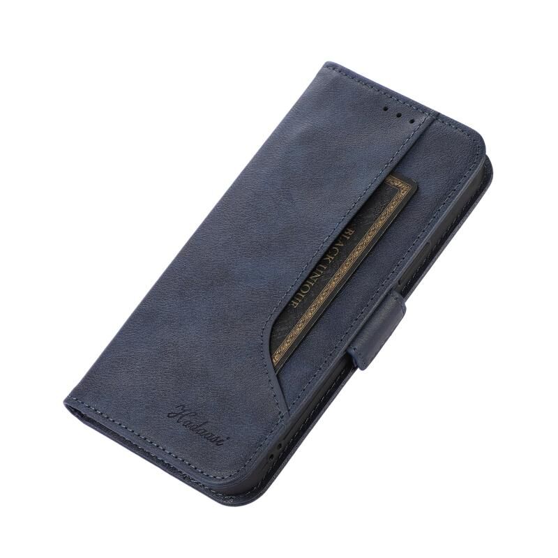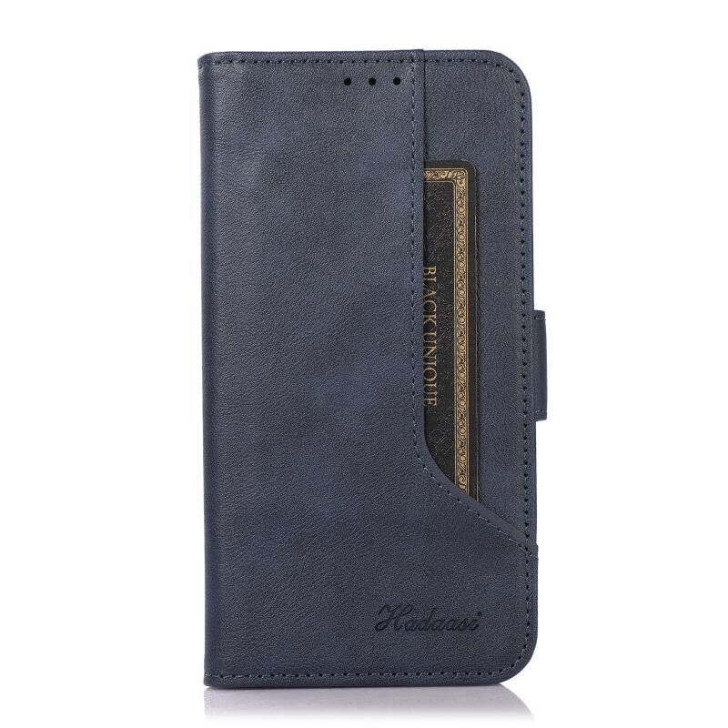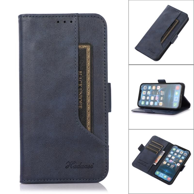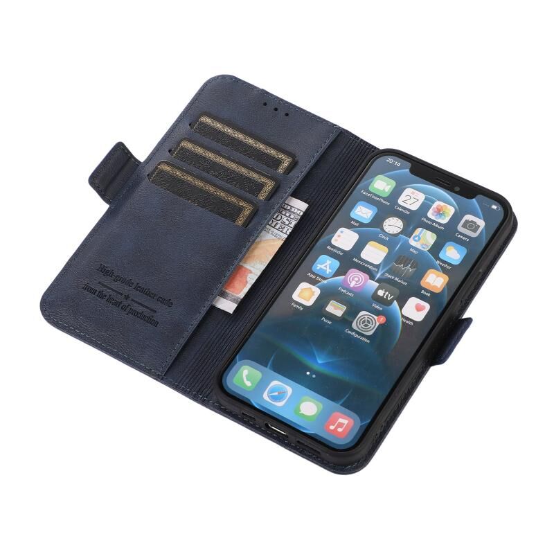 For iPhone 12 / 12 Pro Dual Buckle Card Wallet Calf Leather Phone Case(Blue)