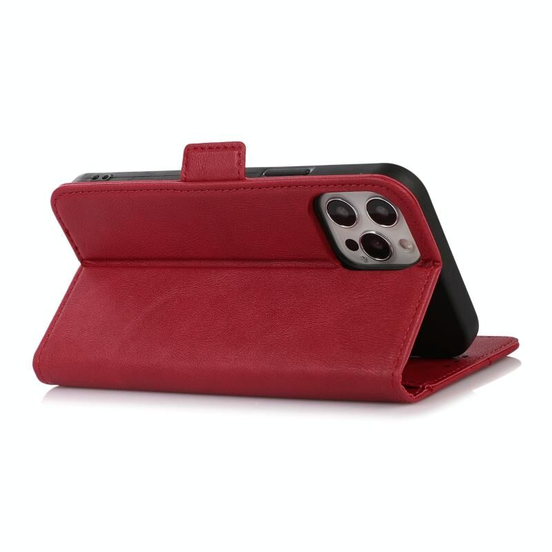 For iPhone 12 / 12 Pro Dual Buckle Card Wallet Calf Leather Phone Case(Red)