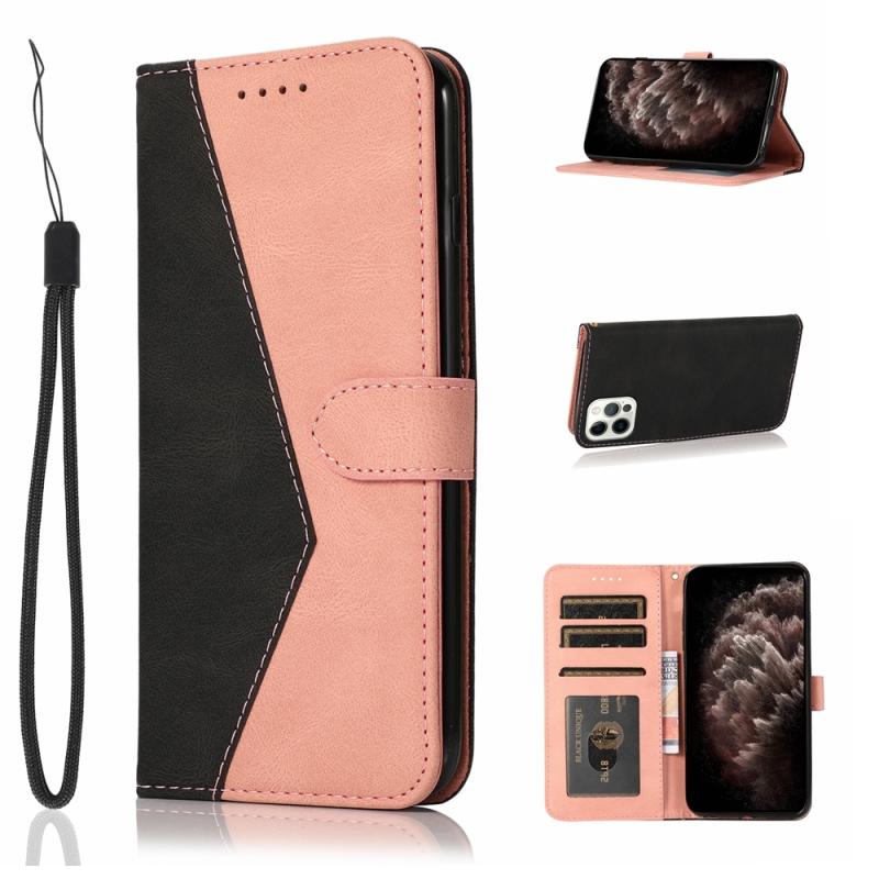 For iPhone 12 / 12 Pro Dual-color Stitching Leather Phone Case(Black Rose Gold)