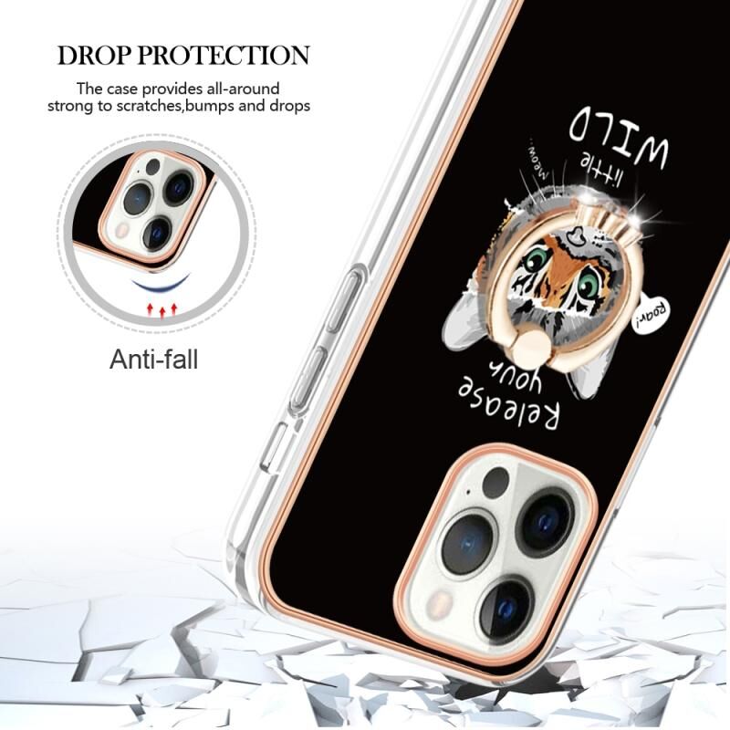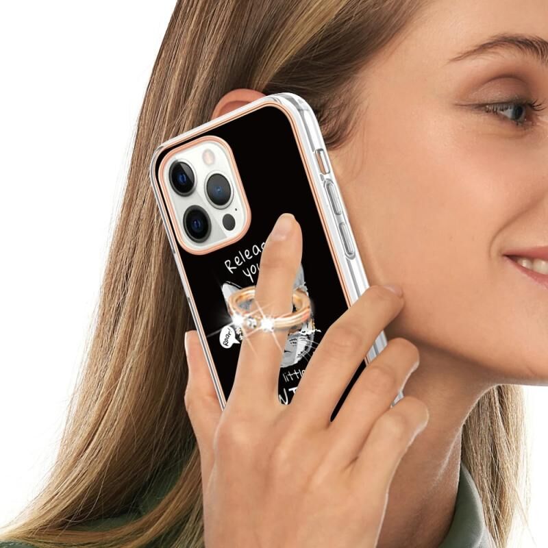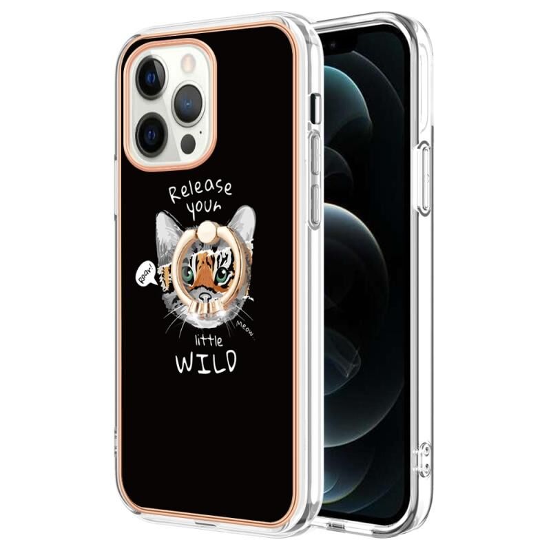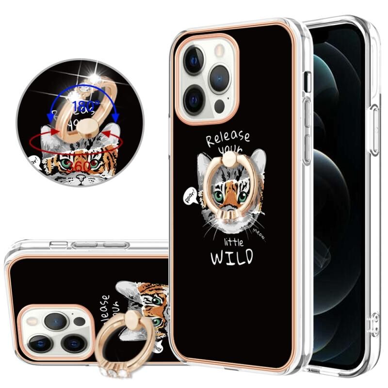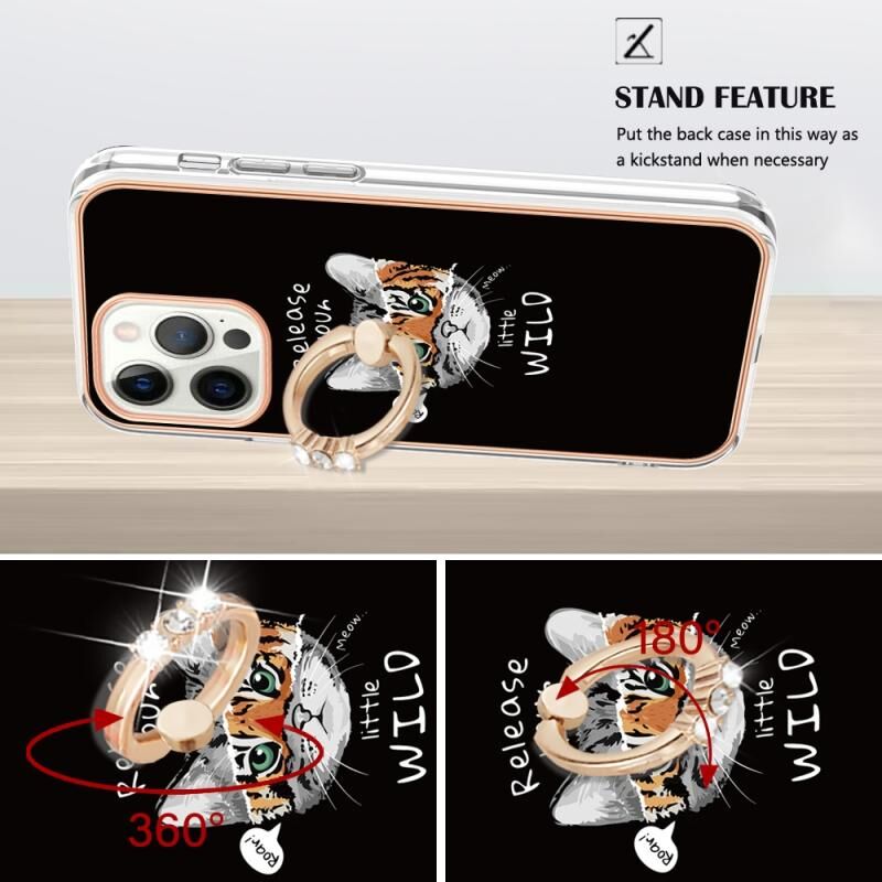 For iPhone 12 / 12 Pro Electroplating Dual-side IMD Phone Case with Ring Holder(Natural Growth)