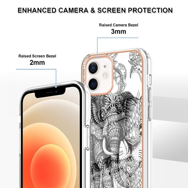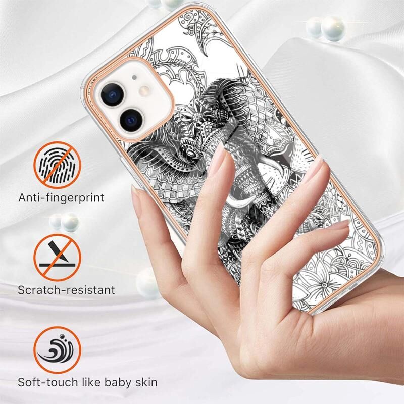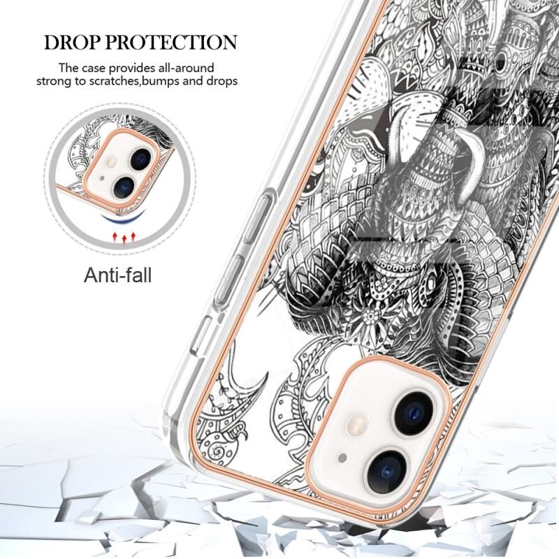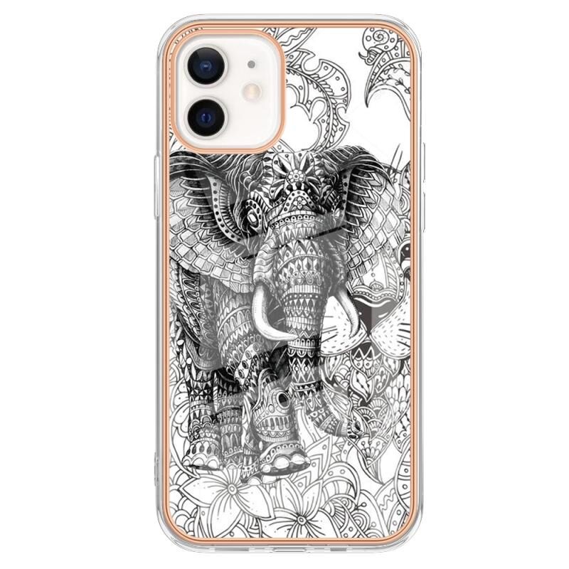 For iPhone 12 / 12 Pro Electroplating Marble Dual-side IMD Phone Case(Totem Elephant)