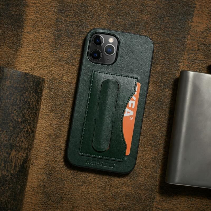 For iPhone 12 / 12 Pro Fierre Shann Full Coverage Protective Leather Case with Holder & Card Slot(Green)