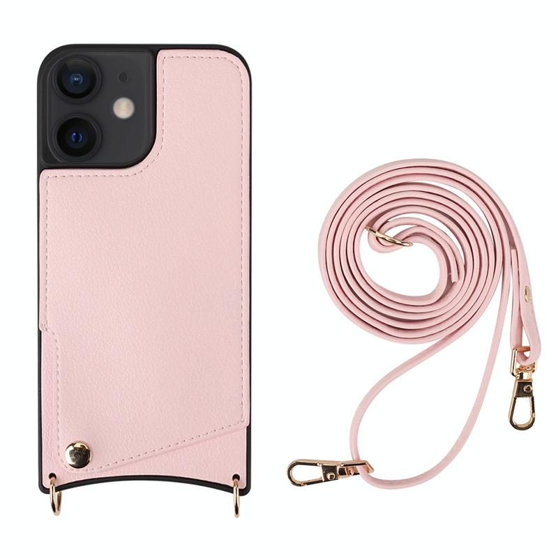 Θήκη κινητού τηλεφώνου για iPhone 12 / 12 Pro με σχισμή για κάρτες σε σχήμα ουράς ψαριού, PU + TPU, με μακρύ κορδόνι (Μωβ)