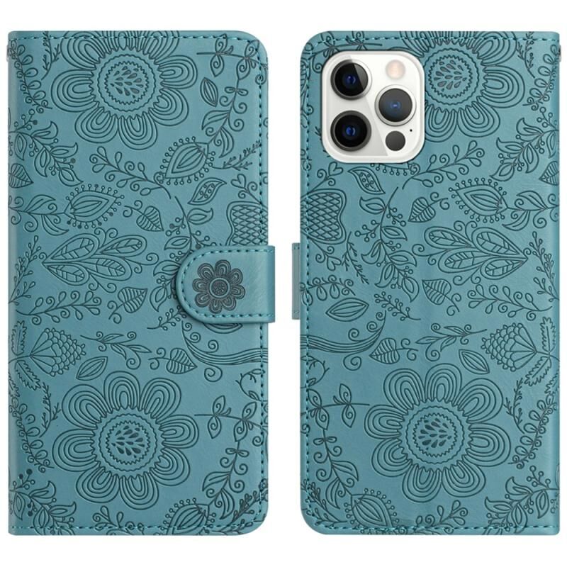Θήκη τηλεφώνου από δέρμα με ανάγλυφο floral σχέδιο για iPhone 12 / 12 Pro (Σκούρο Πράσινο)
