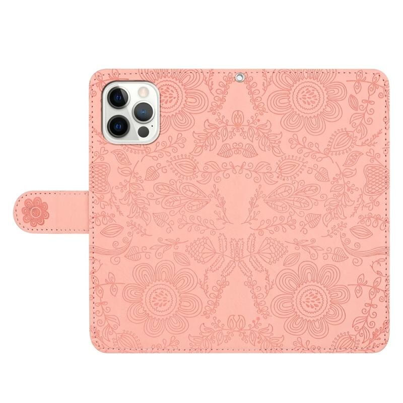 For iPhone 12 / 12 Pro Floral Embossed Pattern Leather Phone Case(Pink)