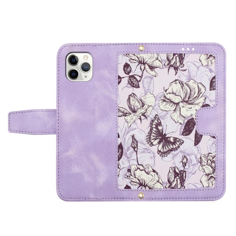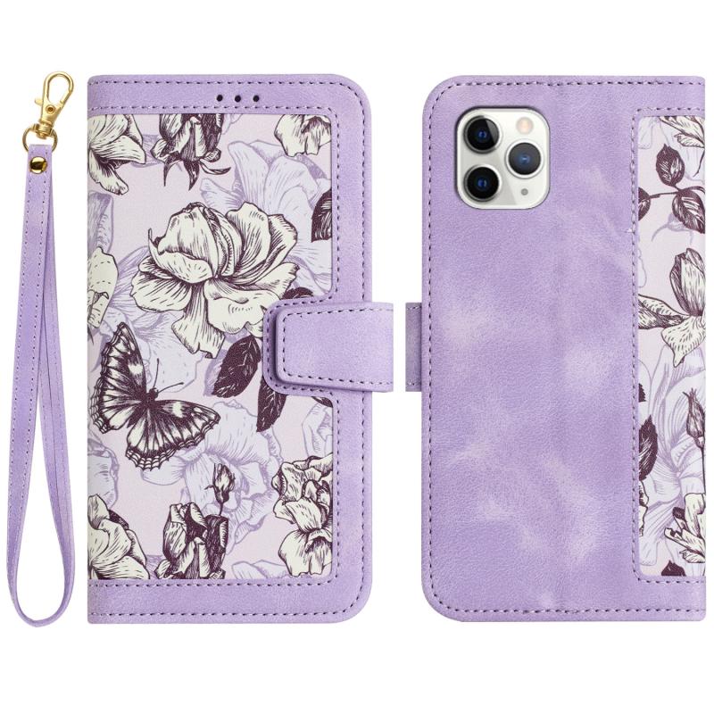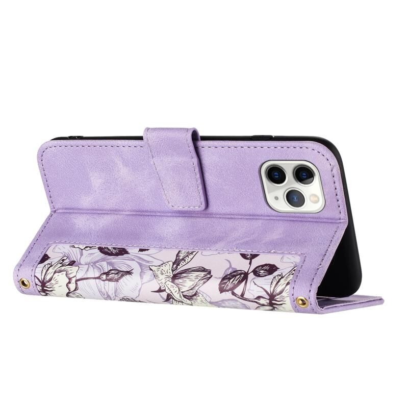 Θήκη τηλεφώνου από δέρμα με λουλουδάτο σχέδιο για iPhone 12 / 12 Pro με κορδόνι (Ανοιχτό Μωβ)
