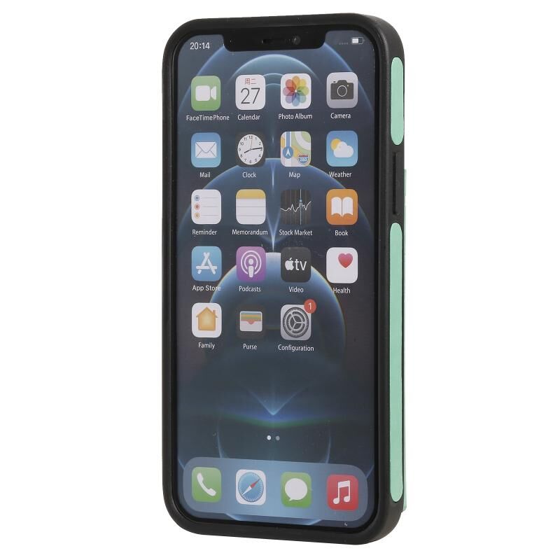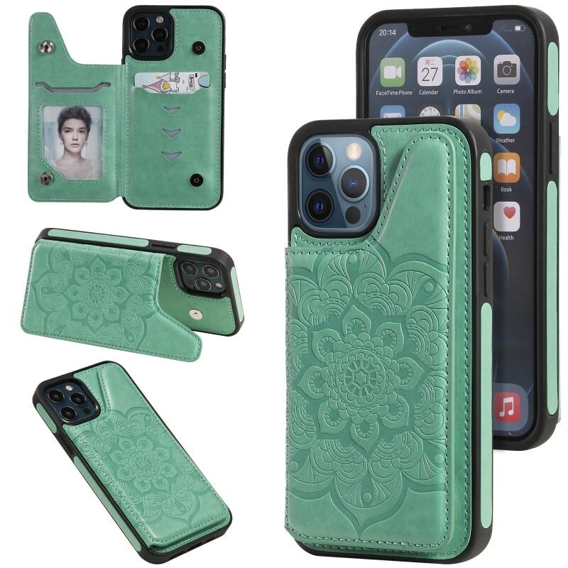 For iPhone 12 / 12 Pro Flower Embossing Pattern Shockproof Protective Case with Holder & Card Slots & Photo Frame(Green)