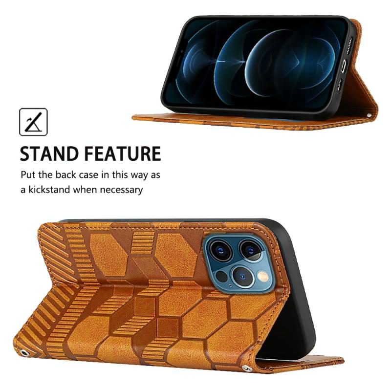 For iPhone 12 / 12 Pro Football Texture Magnetic Leather Flip Phone Case(Khaki)