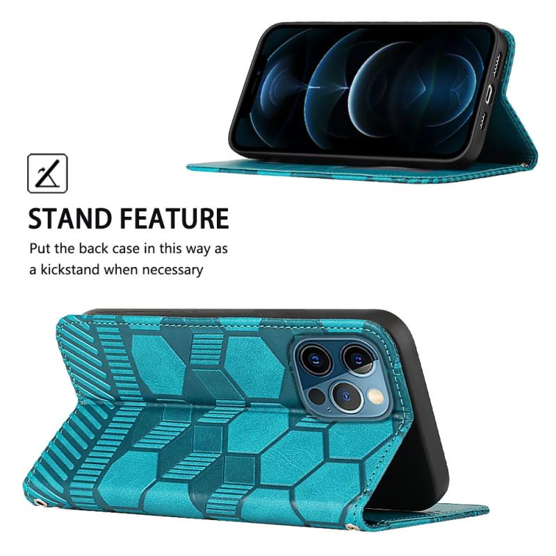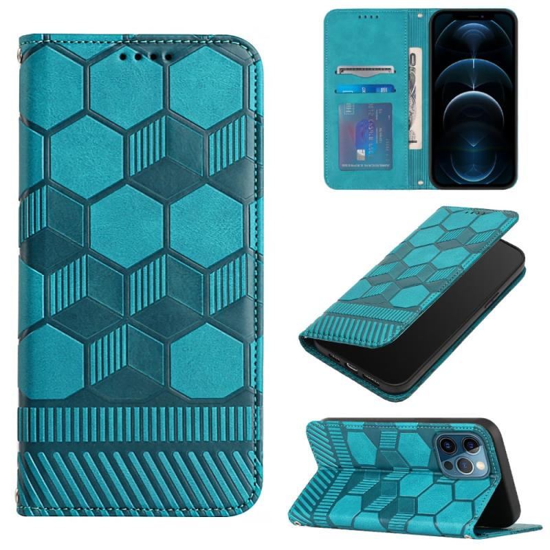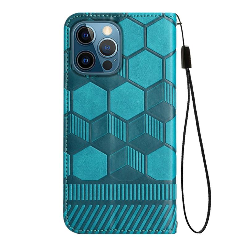 For iPhone 12 / 12 Pro Football Texture Magnetic Leather Flip Phone Case(Light Blue)