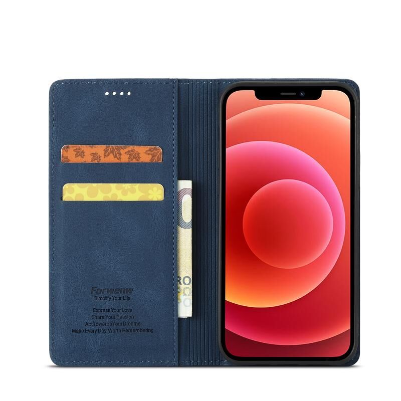 For iPhone 12 / 12 Pro Forwenw F2 Series Magnetic Horizontal Flip Leather Case with Holder & Card Slots & Wallet(Blue) (Forwenw)