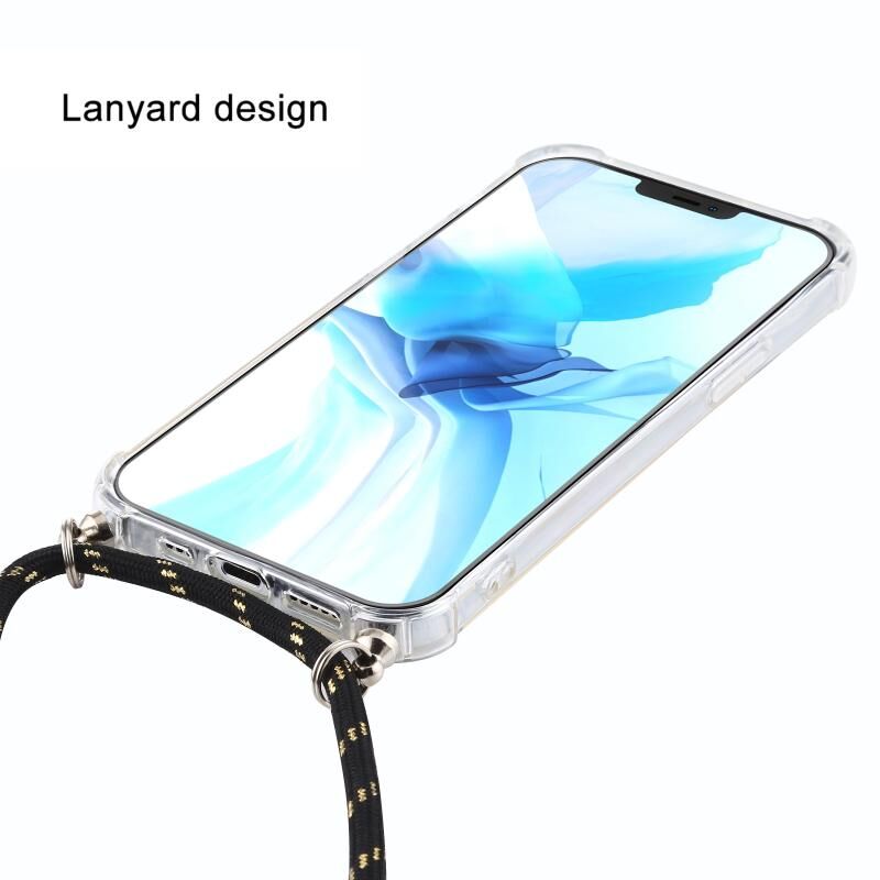 Θήκη για iPhone 12 / 12 Pro, Διαφανής από TPU, Αντικραδασμική σε τέσσερις γωνίες, με Λουρί (Κόκκινη)