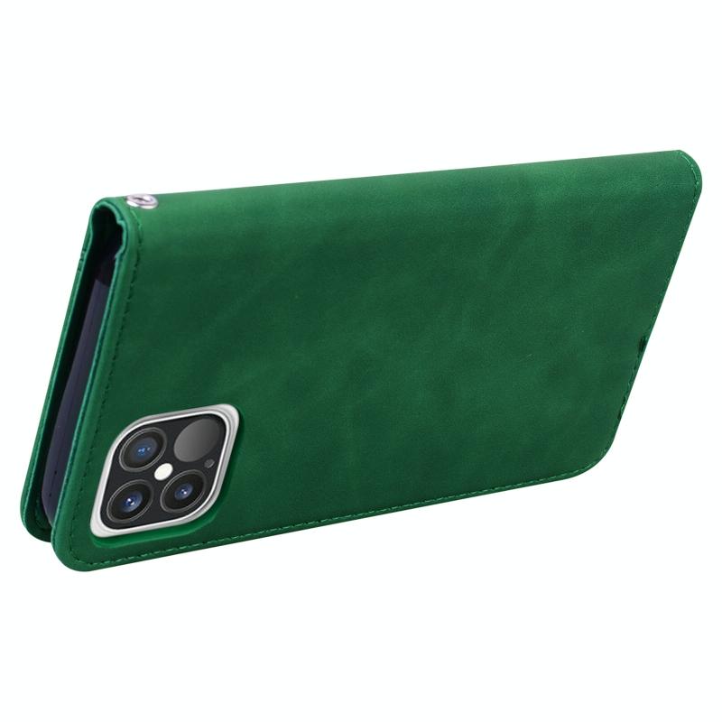For iPhone 12 / 12 Pro Frosted Business Magnetic Horizontal Flip PU Leather Case with Holder & Card Slot & Lanyard(Green)