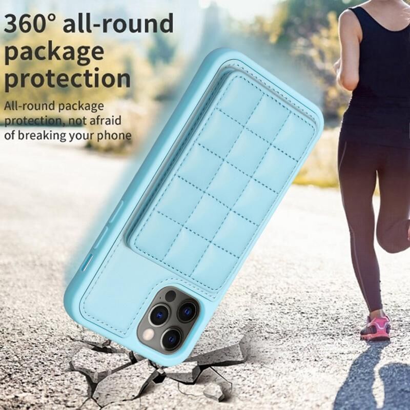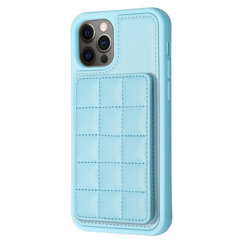 For iPhone 12 / 12 Pro Grid Card Slot Holder Phone Case(Blue)