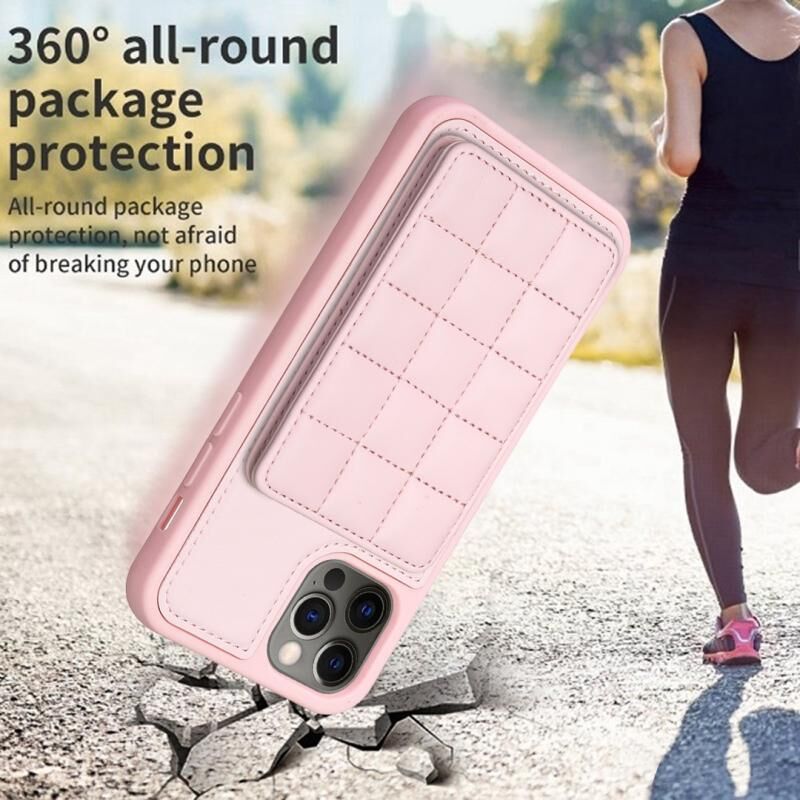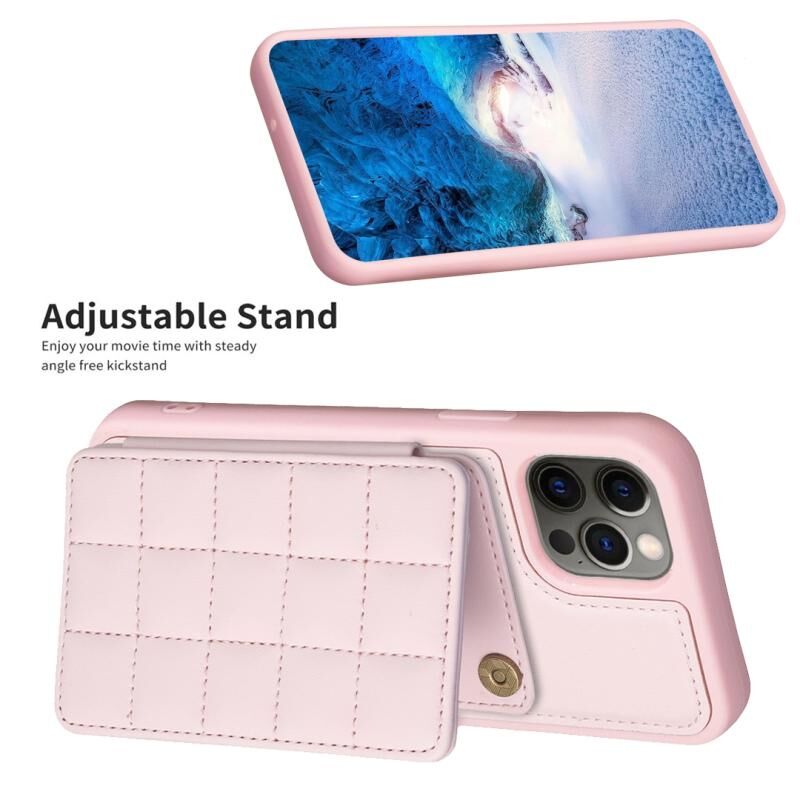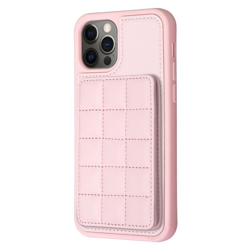 For iPhone 12 / 12 Pro Grid Card Slot Holder Phone Case(Pink)