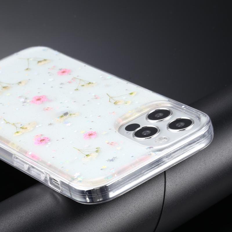 For iPhone 12 / 12 Pro Gypsophila Flowers Pattern TPU Protective Case(Pink)