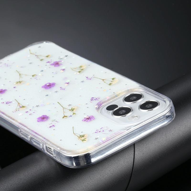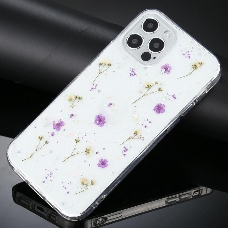 For iPhone 12 / 12 Pro Gypsophila Flowers Pattern TPU Protective Case(Purple)
