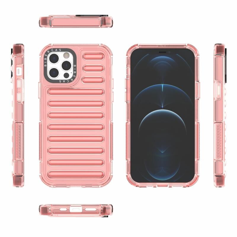 For iPhone 12 / 12 Pro High Transparency TPU Hybrid PC Airbag Phone Case(Peach Red)