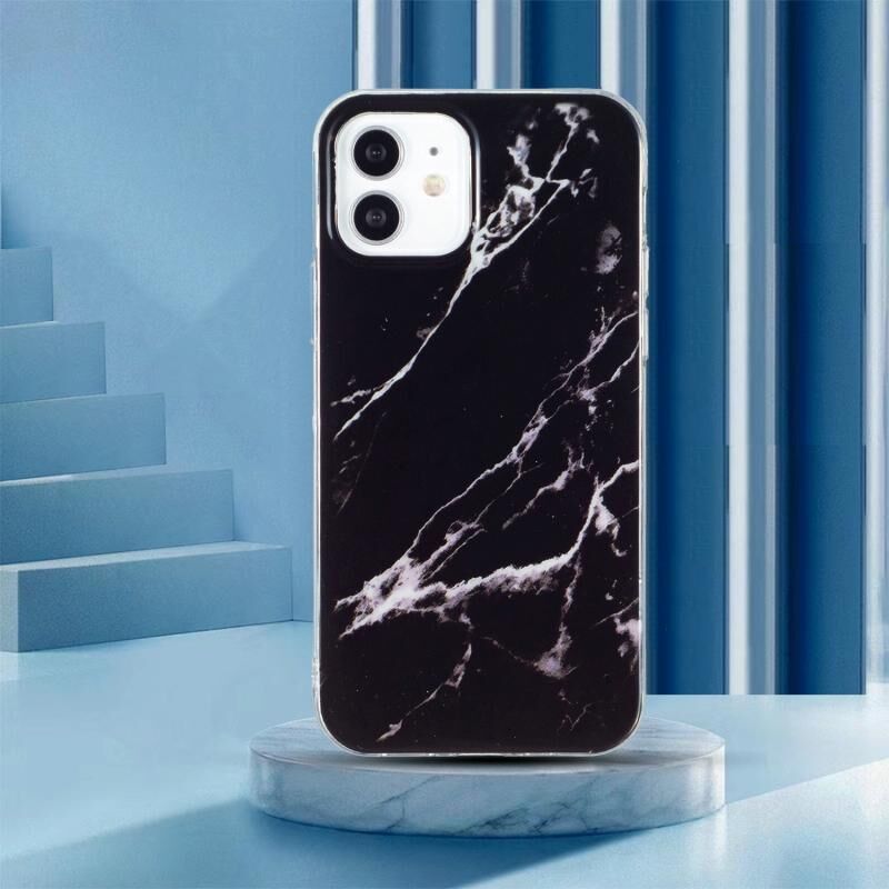 For iPhone 12 / 12 Pro IMD Marble Pattern TPU Phone Case(Black)