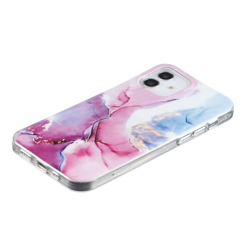 For iPhone 12 / 12 Pro IMD Marble Pattern TPU Phone Case(Pink Blue)