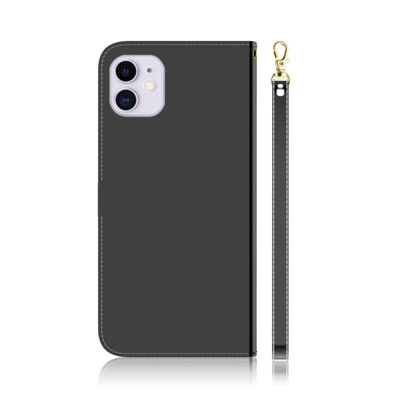 Θήκη δερμάτινη οριζόντιας αναδίπλωσης με καθρέφτη, για iPhone 12 / 12 Pro, με βάση στήριξης, θήκες καρτών, πορτοφόλι και λουρί (Ασημί).