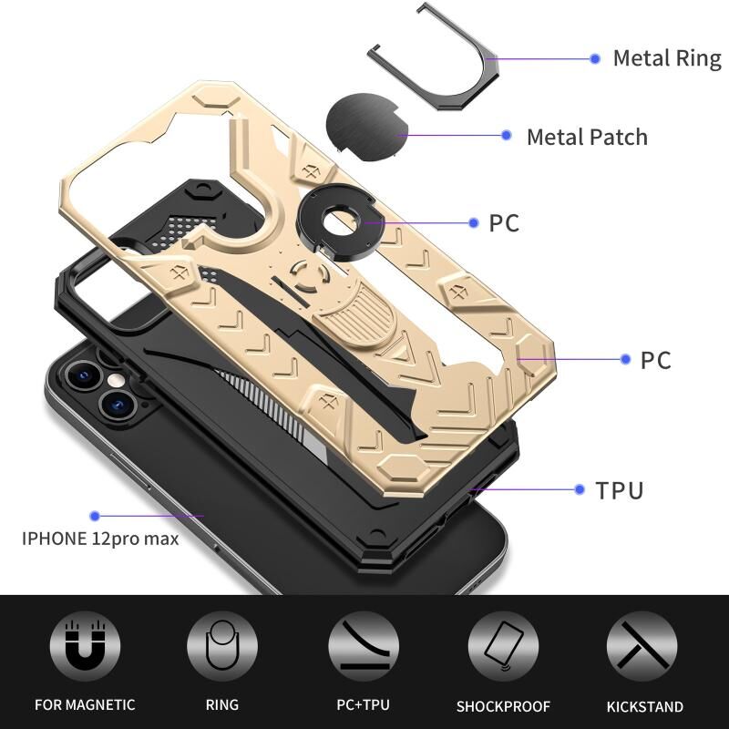 Θήκη κινητού τηλεφώνου 2 σε 1 PC + TPU Iron Knight Series για iPhone 12 / 12 Pro με βάση δακτυλιδιού (Κόκκινο)