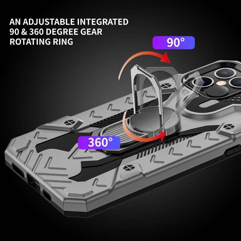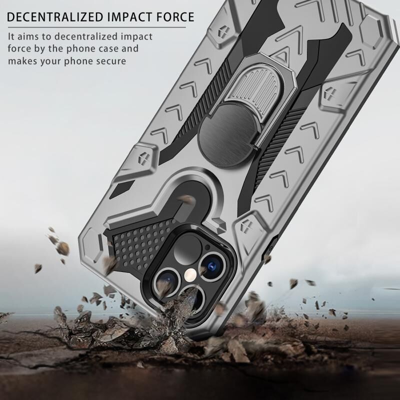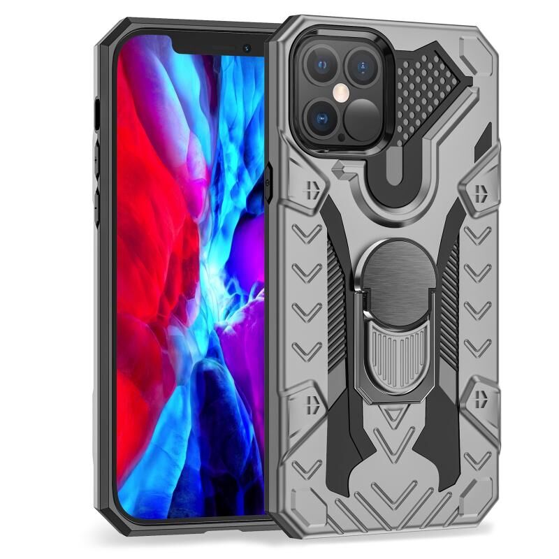 Θήκη κινητού τηλεφώνου 2 σε 1 PC + TPU για iPhone 12 / 12 Pro Iron Knight Series με δακτύλιο στήριξης (Γκρι)