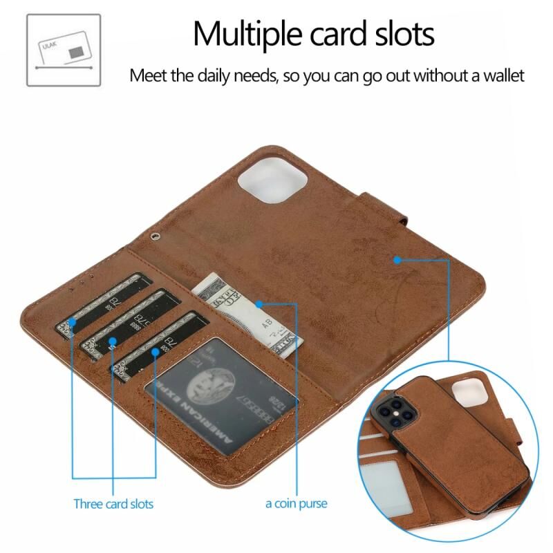 4. Πολυλειτουργικός σχεδιασμός, θήκες για κάρτες, πορτοφόλι, βάση στήριξης, αποσπώμενη μαγνητική προστατευτική πίσω θήκη.