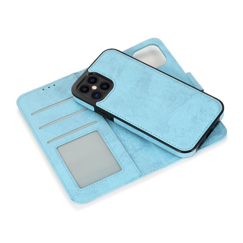 For iPhone 12 / 12 Pro KLT888-2 Retro 2 in 1 Detachable Magnetic Horizontal Flip TPU + PU Leather Case with Holder & Card Slots & Photo Frame & Wallet(Sky Blue)