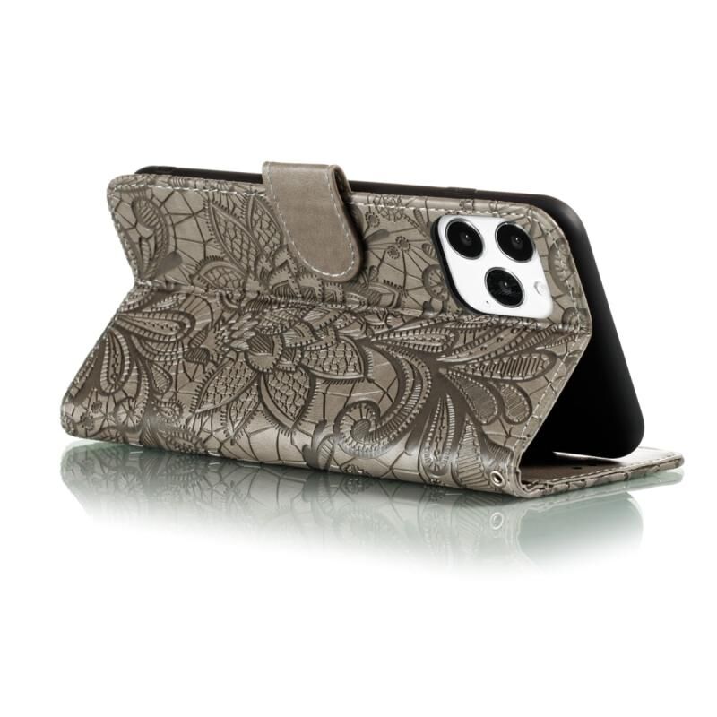 Θήκη δέρματος οριζόντιας αναδίπλωσης με δαντέλα λουλουδιού για iPhone 12 / 12 Pro με βάση & υποδοχές καρτών & πορτοφόλι & κορνίζα φωτογραφιών (Κόκκινο)