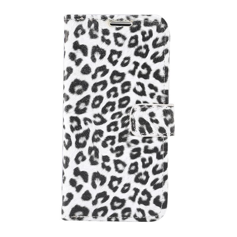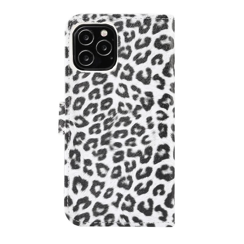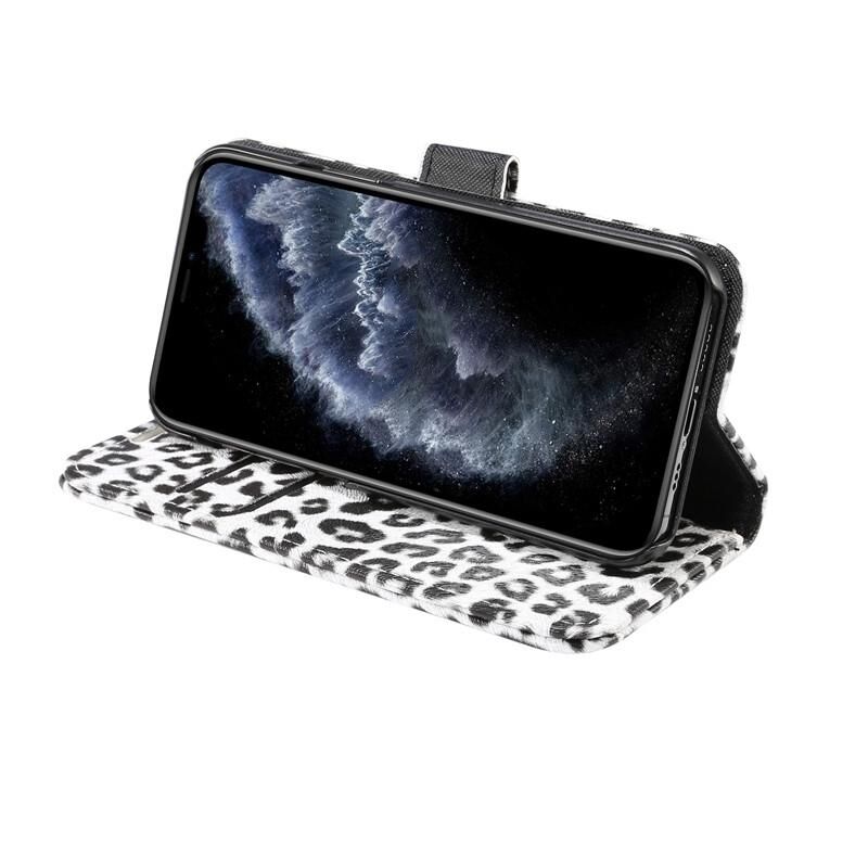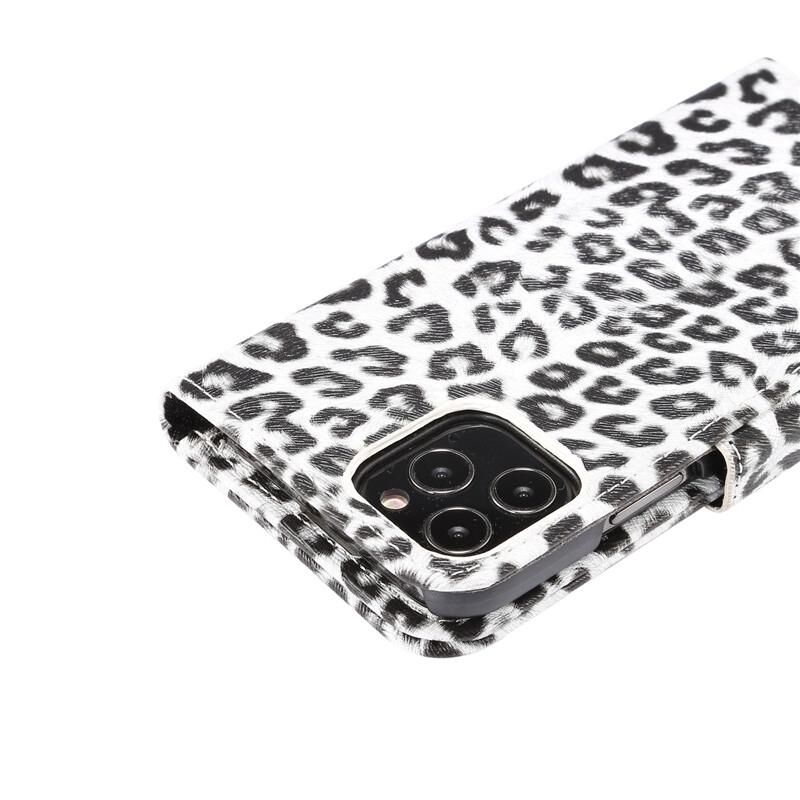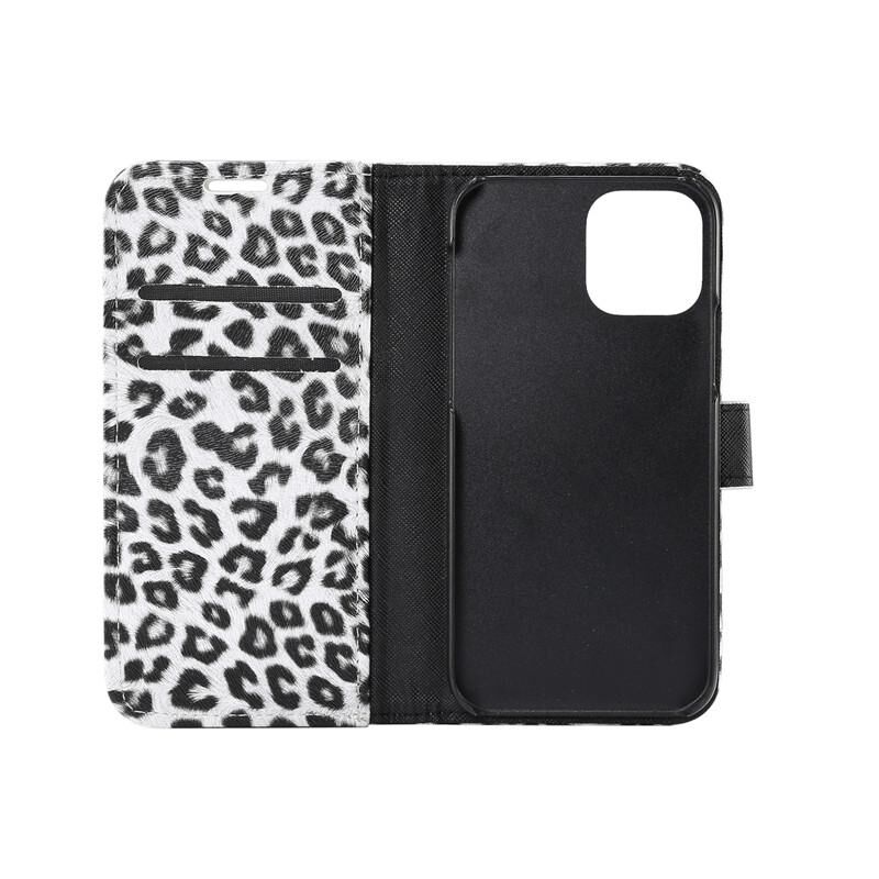 Θήκη δέρματος οριζόντιας αναδίπλωσης με σχέδιο λεοπάρδαλης για iPhone 12 / 12 Pro με υποδοχή κάρτας και βάση (Λευκό)