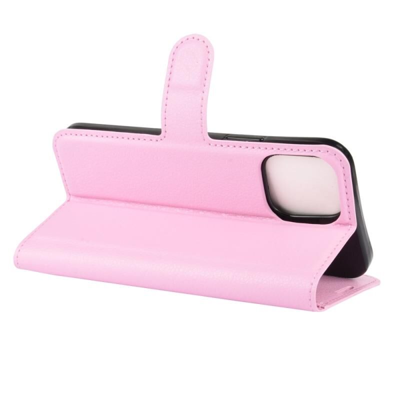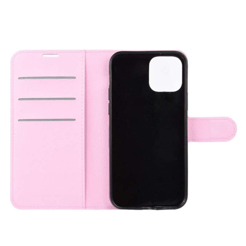 Θήκη προστασίας οριζόντιας αναδίπλωσης με υφή δέρματος λύτσι για iPhone 12 / 12 Pro με βάση στήριξης & υποδοχές καρτών & πορτοφόλι (Μαύρο)