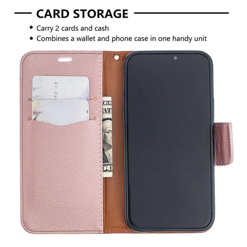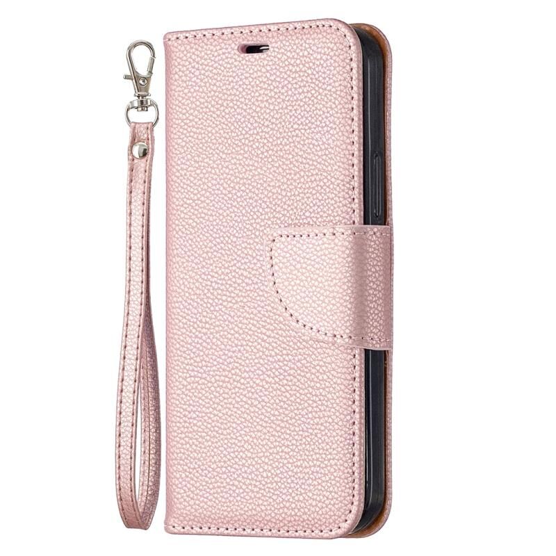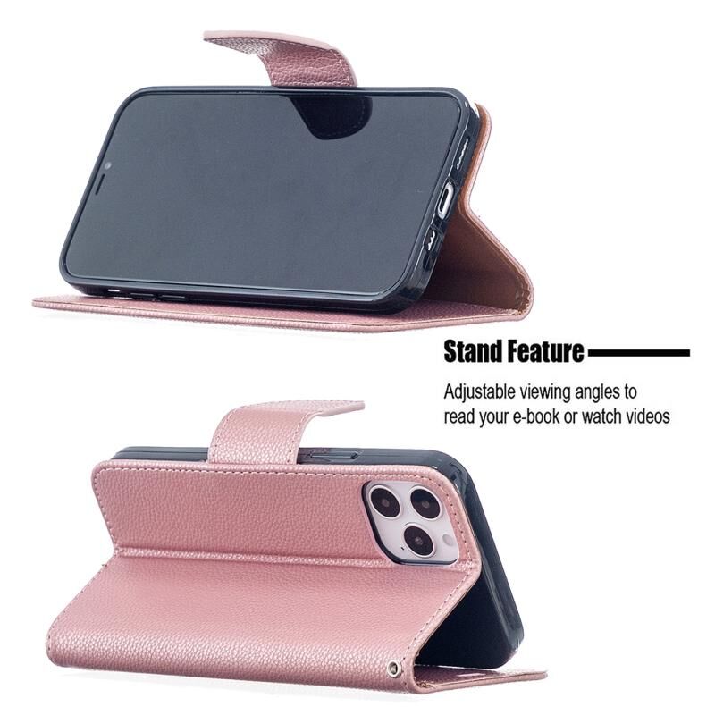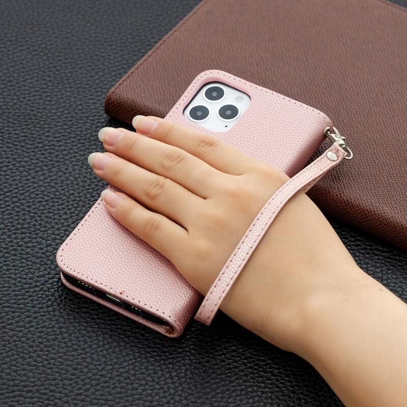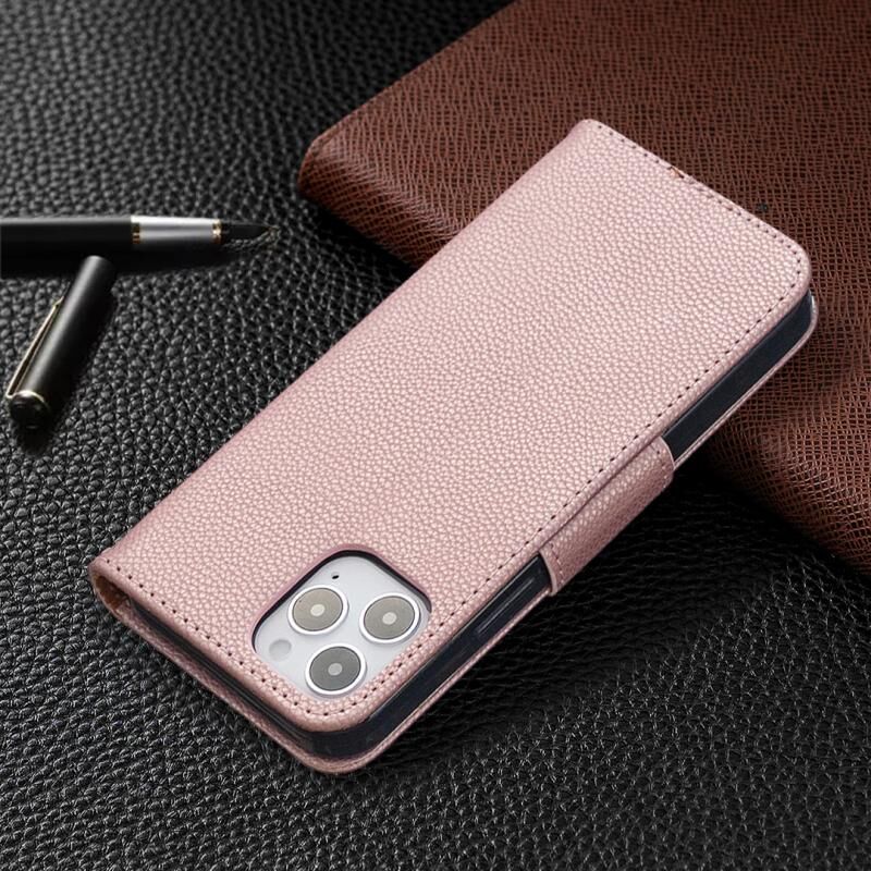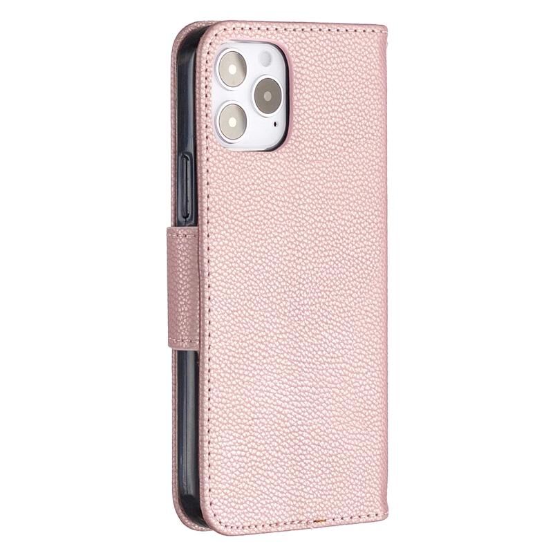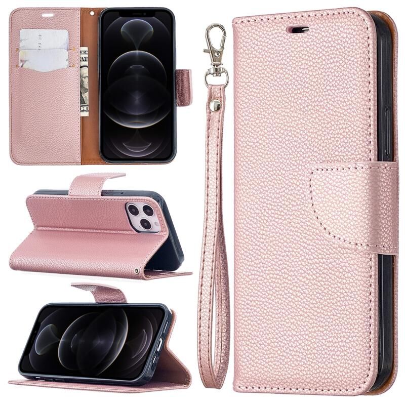 Θήκη δέρματος οριζόντιας αναδίπλωσης με υφή Litchi, απλό χρώμα για iPhone 12 / 12 Pro με βάση στήριξης & υποδοχές καρτών & πορτοφόλι & κορδόνι (Μαύρο)