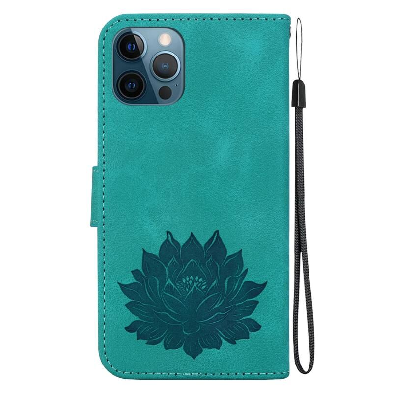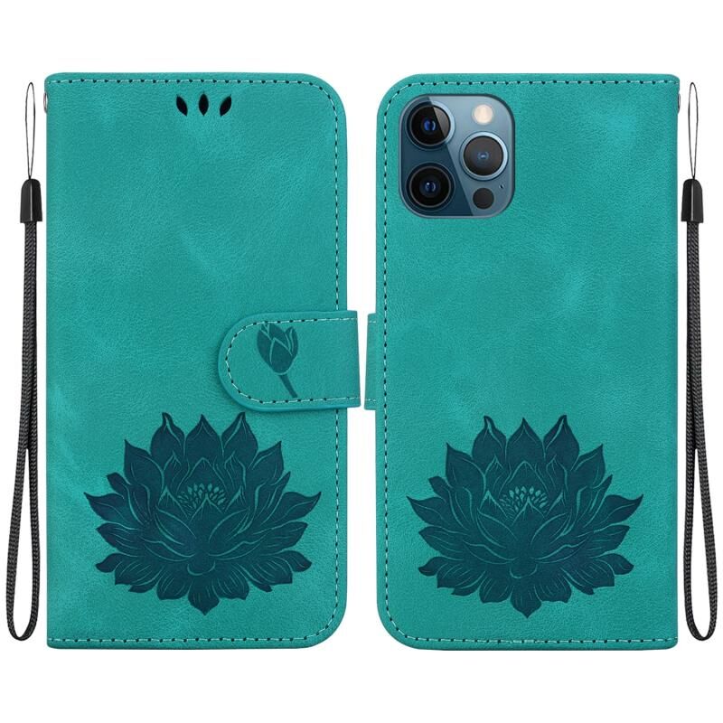 For iPhone 12 / 12 Pro Lotus Embossed Leather Phone Case(Green)